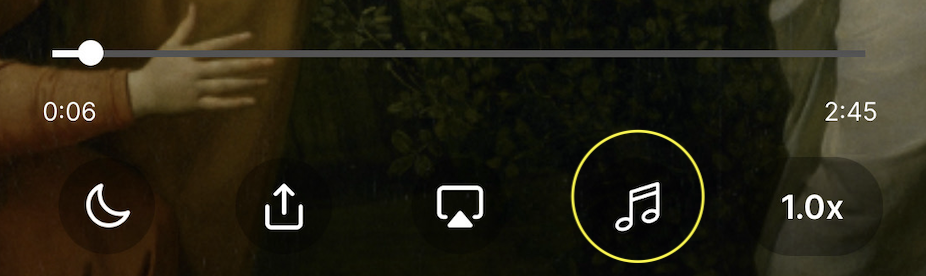 Tap the music icon on the Today page or during a meditation to adjust or turn off background music.